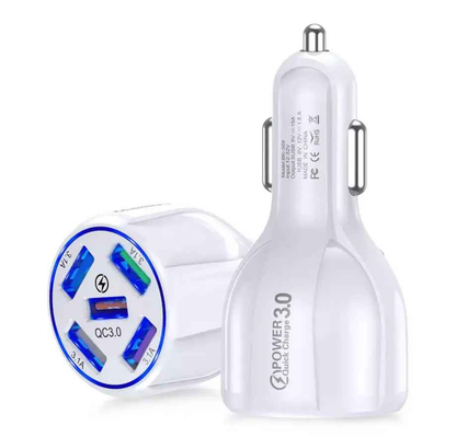Experience the ultimate convenience and efficiency with our Quick Charge 3.0 Car Charger, featuring five versatile USB ports designed for universal compatibility. This compact, fast-charging adapter is your perfect travel companion, ensuring all your devices stay powered up during your journeys. With the latest Quick Charge 3.0 technology, it charges up to 4 times faster than standard chargers, significantly cutting down your devices' charging time. Safety is paramount, offering protection against overheating, high current, and voltage surges, ensuring a secure charging environment for your gadgets. Its broad compatibility makes it suitable for virtually all smartphones, tablets, PDAs, and GPS units, making it an essential accessory for every vehicle.