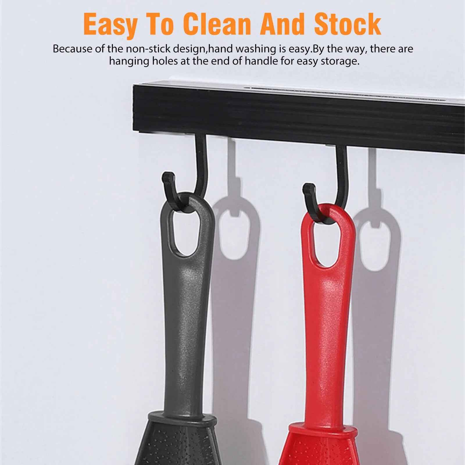 Easy to clean and stock:Because of the non-stick design,hand washing is easy.By the way, there are hanging holes at the end of handle for easy storage.