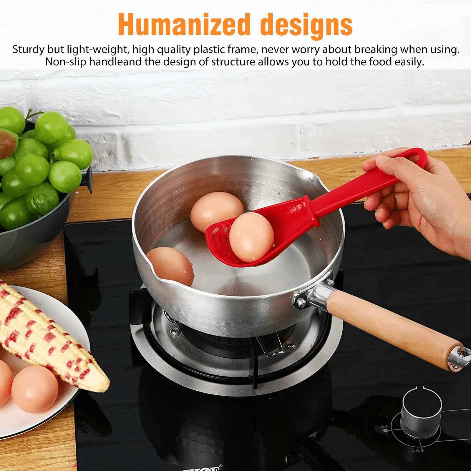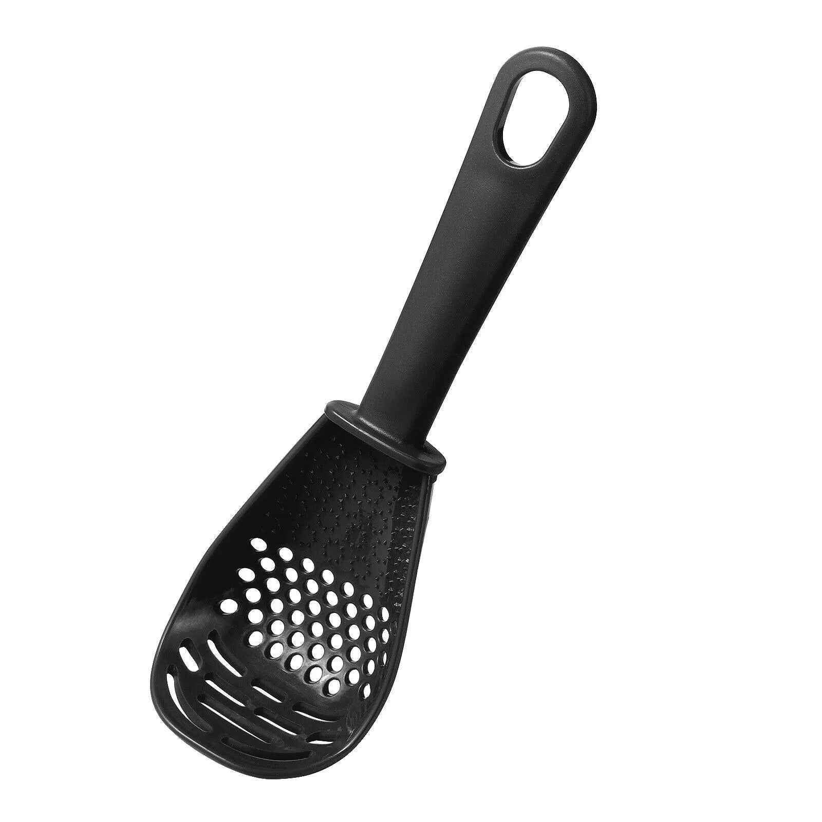 High quality materials:This multifunctional cooking spoon made of thermoplastic with high temperature resistance and the heat-resistant can be up to -20°C/-4°F ~210°C/410°F, the cooking spoon is lighter and will not transfer heat like metal scoops. The material was also treated to be non-stick, with the right-sized mesh, you can use it to scoop out your food easily and there is no need to worry about the residues. The plastic structure is so strong that it can be used for mashing and grinding.