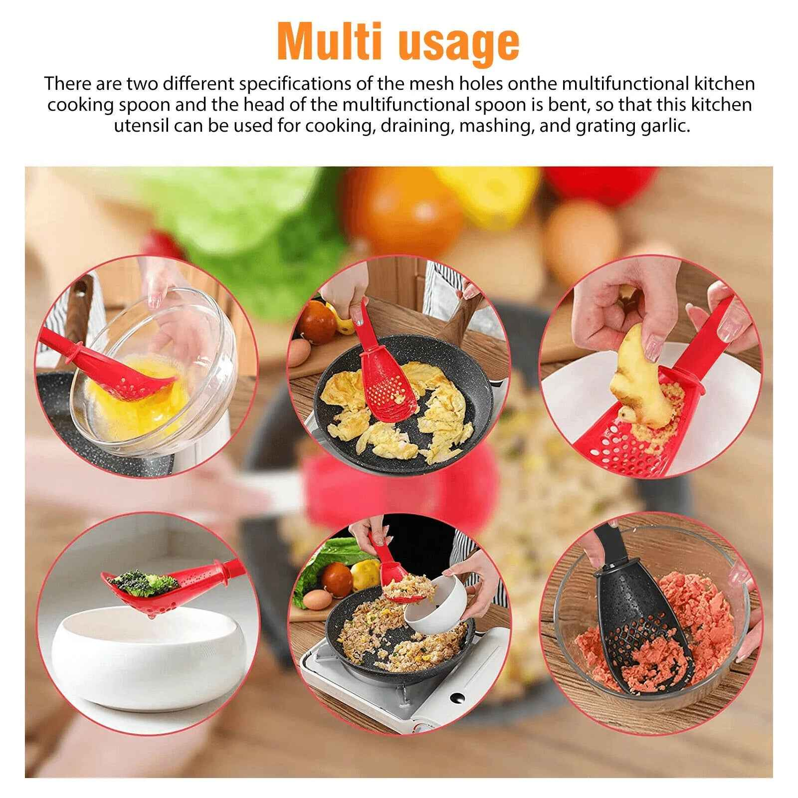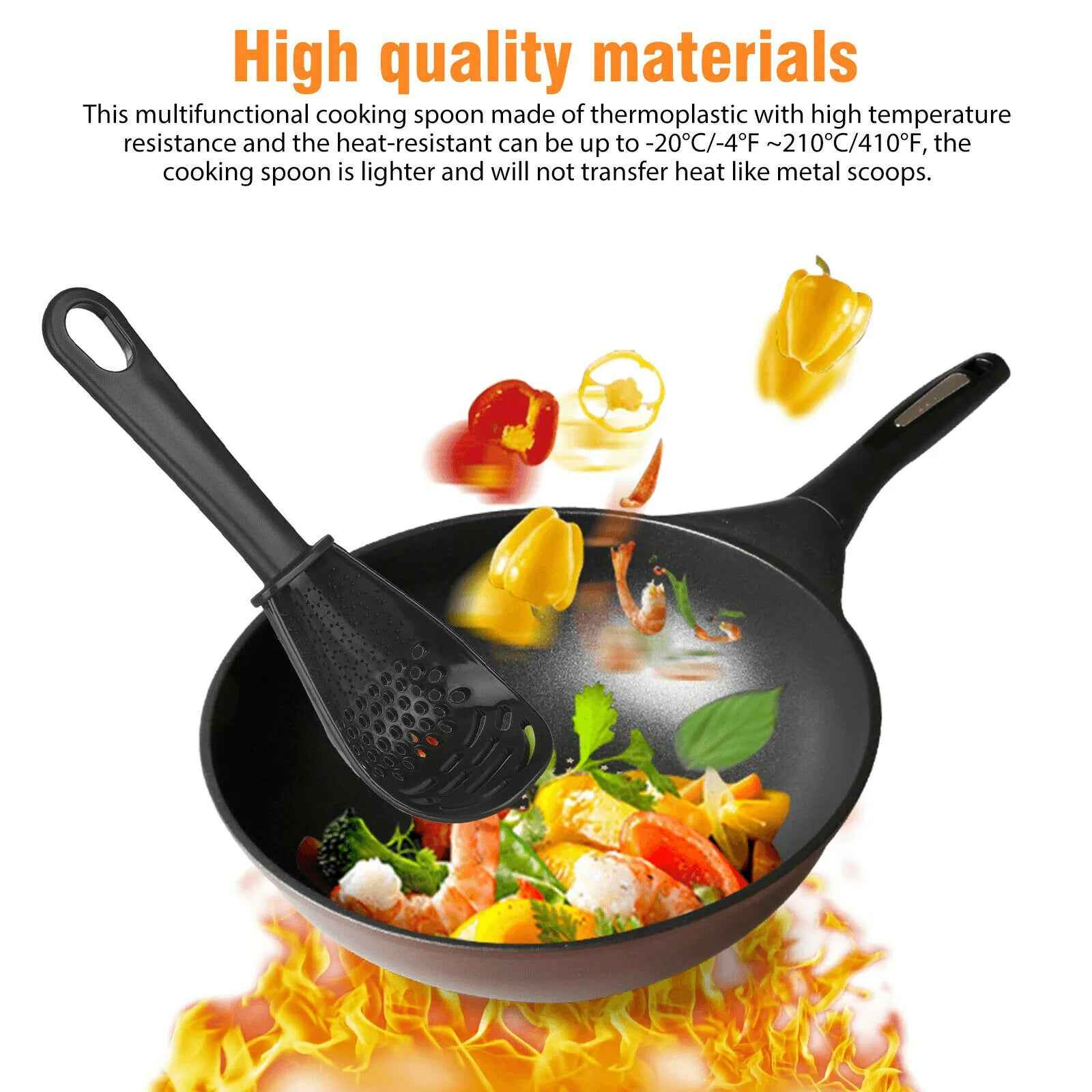 Food quality:This Multifunctional Kitchen Cooking Spoon is food-grade quality, tasteless, non-toxic, and hygienic.