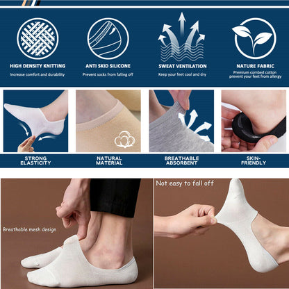 3-12 Pairs Mens No Show Invisible Nonslip Loafer Solid Boat Cotton Low Cut Socks