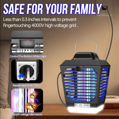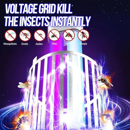 - 【Effective Physical Mosquito Killer】The two-color light can attracts most flying insects: mosquito,Aedes, gnats, midges,flies,horse flies,fruit flies,house flies,moths,wasps,etc.The voltage of the electrical grid is up to 4200v.Once the insects fly in,this bug zapper will physically killing them in an efficient and environmentally friendly way.This bug zapper is EPA registered,safe for your family and pet.