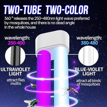 - 【Two-Color】The white tube emit blue-violet light which can effectively attract all kinds of mosquitoes.The ultraviolet light emitted by the black tube is effective in attracting flies,moths and other insects(The black light bulb mainly emits invisible ultraviolet light,if you see it is purple,it is already light and working, not broken!)