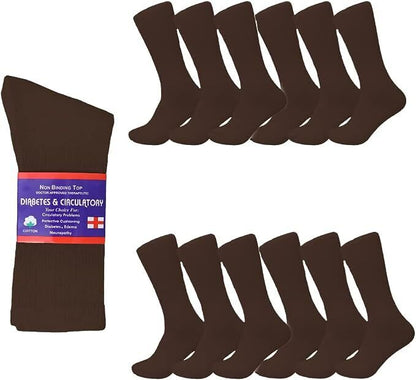 Crafted from a blend of 90% cotton, 7% polyester, and 3% elastane, these diabetic socks offer exceptional quality and comfort. The easy stretch top, loose knit leg, and smooth toe seam make them ideal for those with diabetes and related conditions, providing protection and relief. Additionally, they are highly recommended for individuals with circulation issues such as edema and neuropathy, as the loose fit top promotes healthy blood circulation and reduces the risk of red marks on the calves. Made with moisture-wicking technology, these crew socks keep feet dry and reduce the risk of infections. They are also machine washable and come in a variety of sizes and colors to suit your preferences. Experience the unbeatable comfort and safety of our non-binding and non-elasticated diabetic socks, designed to never restrict or constrict the foot or leg. With their full cushioned foot and smooth comfort toe seaming, these socks provide all-day comfort and protection for individuals living with diabetes, arthritis,