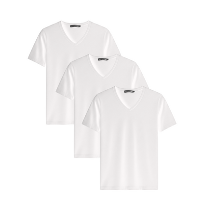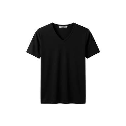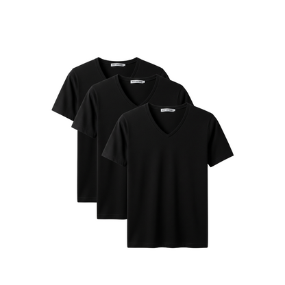 This 3-pack of men's V-neck shirts offers a refined blend of comfort and durability. Crafted from 100% cotton with a double neck ribbed design, these solid black tees provide a snug fit that maintains shape wear after wear. Ideal for layering or wearing alone, they deliver breathable softness and a clean, classic look suitable for both casual and professional settings.