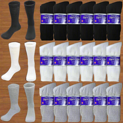 New with tags, made of 90% cotton, 7% polyester, and 3% elasthane, these wholesale bulk diabetic crew socks come in white, black, and grey. Approved by physicians and featuring smooth toe technology, they are ideal for managing circulatory problems, diabetes, edema, and neuropathy. Our priority is your satisfaction, so please don't hesitate to reach out to us for any inquiries or concerns. Fast shipping and a 60-day return policy make your purchase worry-free. Free shipping is available to all states in the USA. Contact us for any questions or issues - we are dedicated to resolving them with a 100% money back refund.