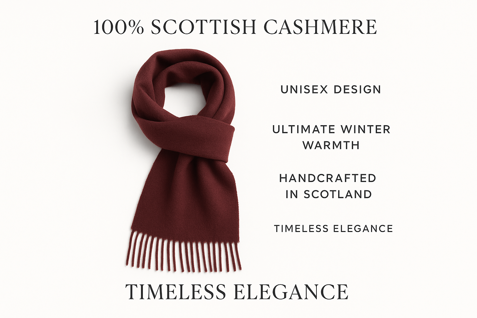 Winter Unisex Plain Solid Scarves 100% Cashmere Wool Warm Scarf Made in Scotland